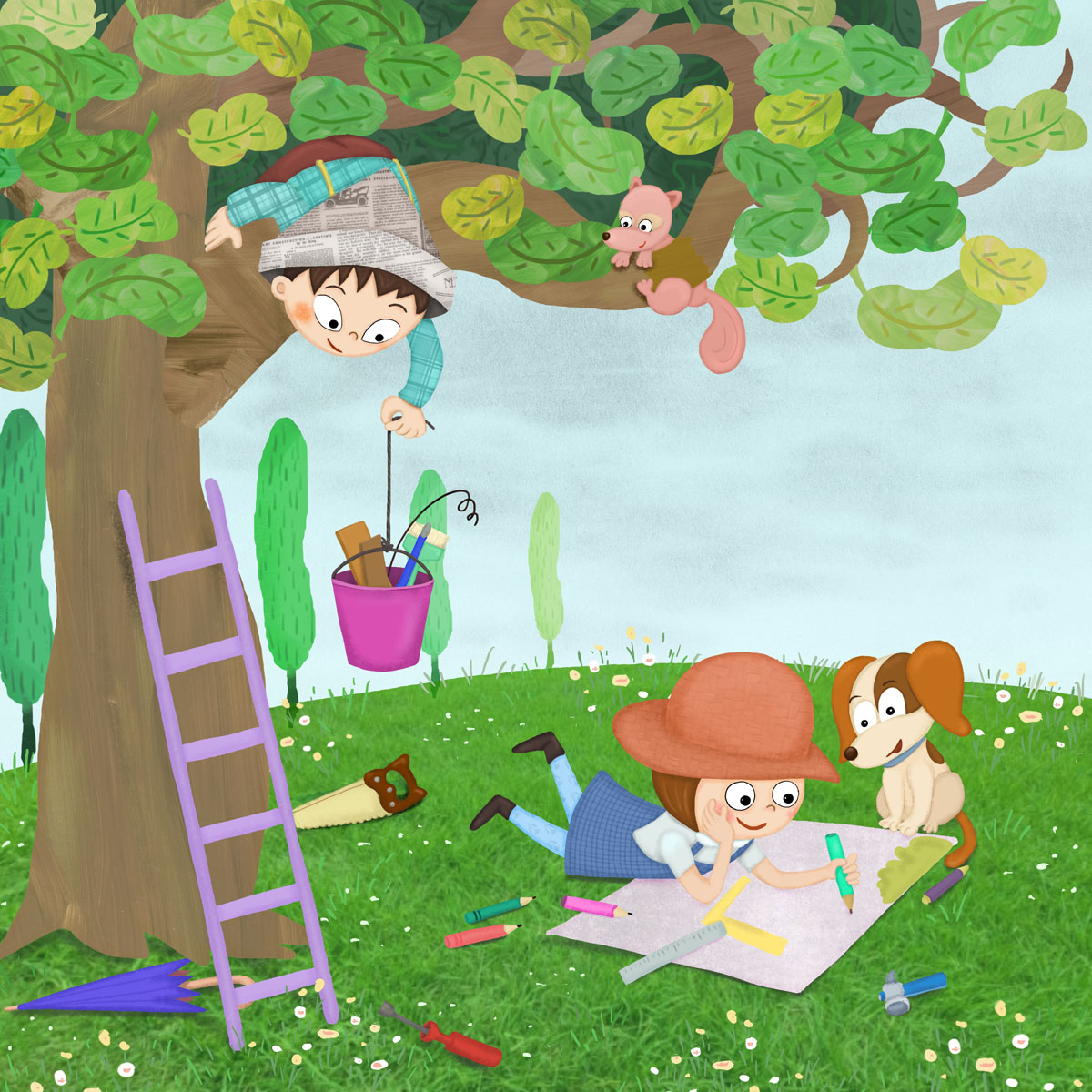 Fun character designs portraying the mischievous bond.